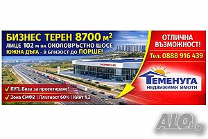 Коммерческие апартаменты площадью 8700 м², фасад 102 м, выходящий на Кольцевую дорогу, — рядом с автосалоном Porsche Sofia East.
